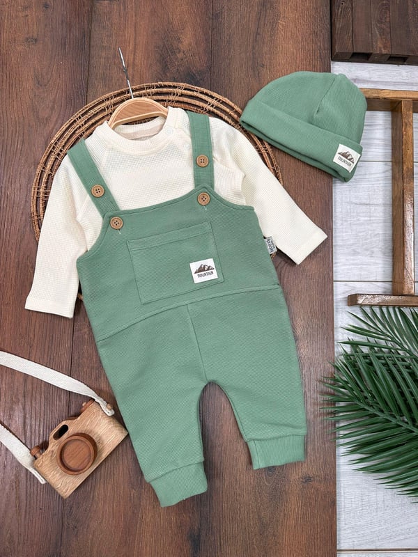 - Şapka: Takımın vazgeçilmez bir parçası olan şapka, güneşten korunmak için mükemmel bir seçenektir. Şapkanın geniş kenarları sayesinde bebeğinizin yüzü güneşten korunur.
