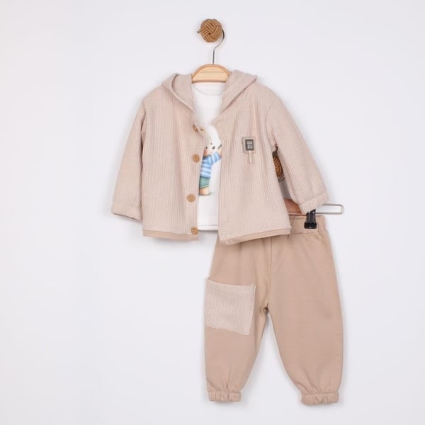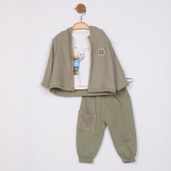 - Üç Parçadan Oluşur: Set içerisinde şık bir bodysuit, rahat bir pantolon ve şirin bir yelek bulunmaktadır. Her bir parça, birbiriyle uyumlu desen ve renklerde tasarlanmıştır, böylece bebeğinize harika bir görünüm kazandırır.